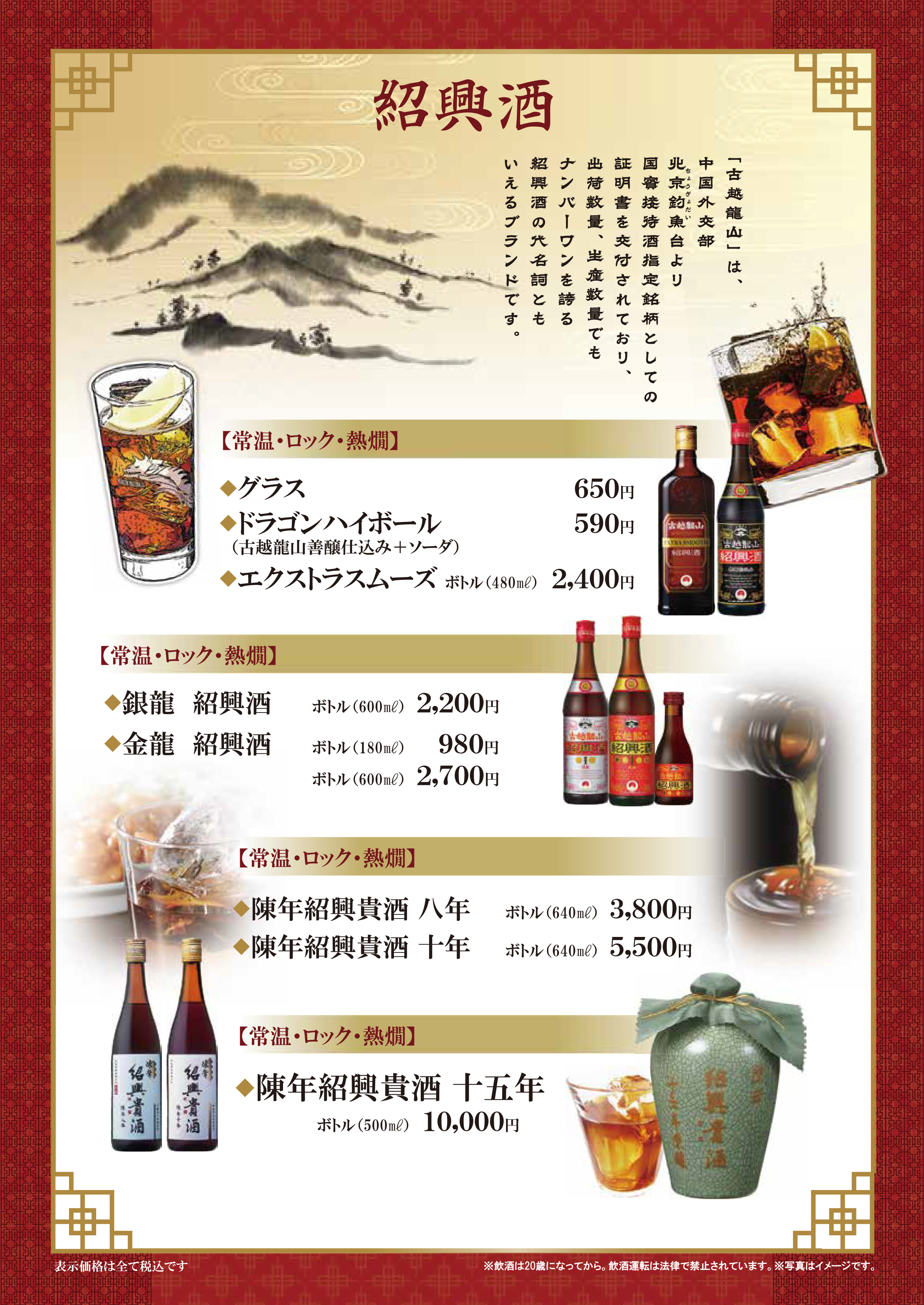 長期間熟成させた本物の紹興酒の味わいをお楽しみください。